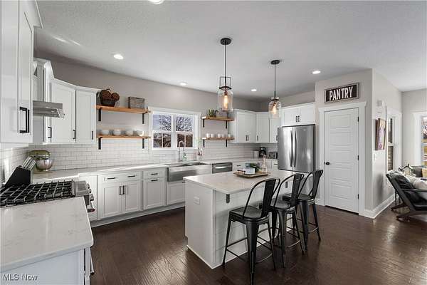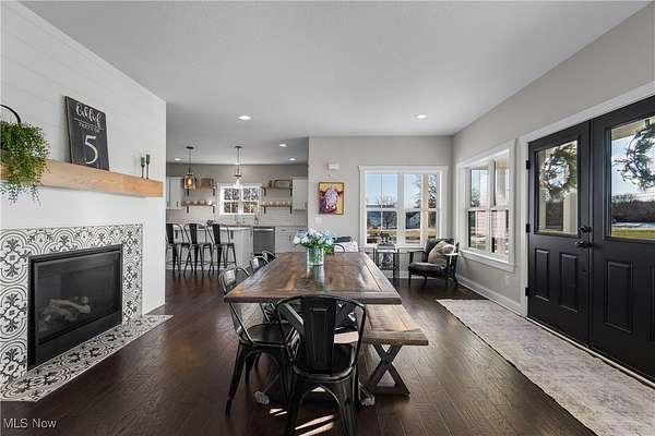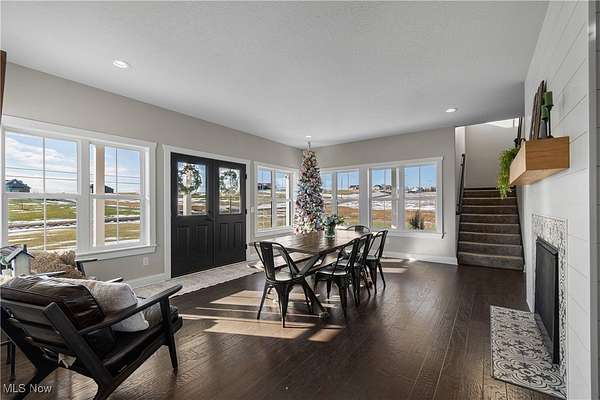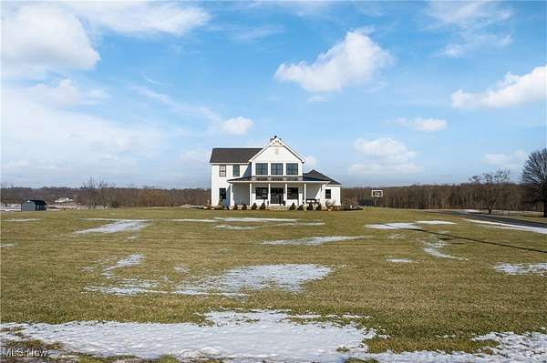Welcome to this stunning farmhouse-style home, built in 2017 and set on a picturesque 5.5-acre lot-perfect for those who love space, privacy, and entertaining. Step inside to a beautiful great room featuring a cozy double-sided fireplace, seamlessly open to the dining area and a gorgeous kitchen complete with quartz countertops, classic subway tile backsplash, stainless steel appliances, and a spacious island ideal for gatherings. The first-floor primary suite offers a private retreat with dual vanities, a walk-in tiled shower, a relaxing soaking tub, and a generous walk-in closet. A conveniently located laundry room adds to the home's thoughtful design. Upstairs, you'll find three additional well-sized bedrooms, each with ample closet space and a full bathroom. The lower level provides additional finished living space with impressive 10-foot ceilings, offering endless possibilities for recreation or relaxation. Outdoors, enjoy summer days in the 20x40 heated in-ground pool featuring a large tanning ledge and slide as well as built in surround sound! The property also boasts a fully stocked pond and a large fire pit, creating the perfect setting for outdoor enjoyment year-round. A whole home generator as well as lily lights for easy holiday lighting around the whole home. This move-in-ready home truly has it all-style, comfort, and exceptional amenities. A must-see property you won't want to miss!