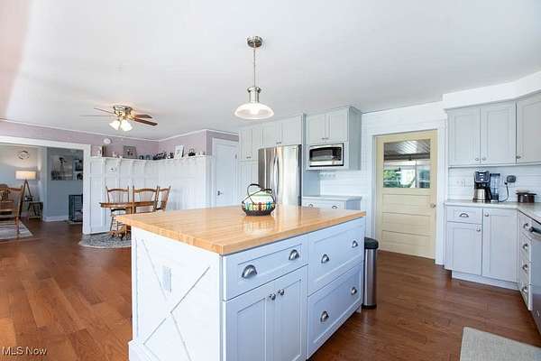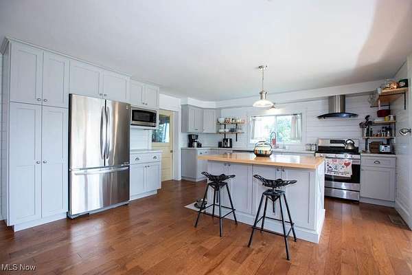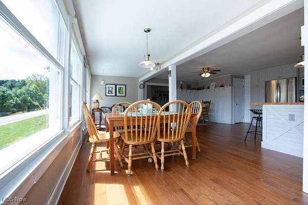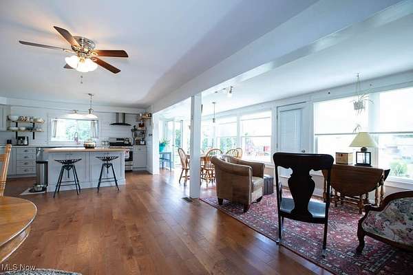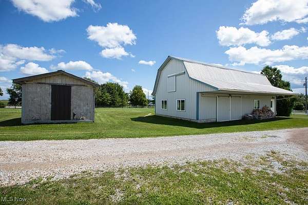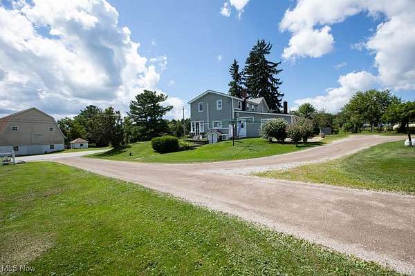 Green acres is the place for you! Experience country living at its finest and make your new home this exceptionally well remodeled country colonial situated off of one of the most scenic rolling hills areas and prettiest streets in all Geauga County. This amazing home has a fabulous country kitchen with custom made cabinetry with a huge center island and SS appliances. All hardwood floors flowing seamlessly in the adjacent morning room area and into the cozy living room. A wide open floor plan continues into the huge back entry mud room that encompasses so many possible uses, laundry area is located here. Now into the back sunroom that could double as a recreation room to gather and hang out with family and friends (2) warm wood stoves help to head the area. The home has forced air, however, utilizes mini split heating and cooling units as well. Upstairs we go find 3 large bedrooms with good closet space and a full bath that is nostalgically unique and much time and money spent here and thought for this incredible home. Outside a huge outbuilding (36x50) 2 large garage doors could hold many cars and toys. Barn and 2 sheds and chicken coop as well. Close to Kent State University Geauga campus as well as The new Berkshire High School and located minutes from Middlefield four convenient shopping another necessity needs.