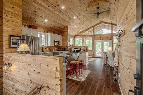 Modern mountain charm meets peaceful privacy at The Ledges at Peach Stone Camp! Built in 2023, this 2 bedroom, 2 bathroom home on 3.21 acres offers an inviting open concept layout with beautiful natural materials and thoughtful design throughout. The main level includes a bedroom with en-suite bath, a spacious living area & well-appointed kitchen, all opening up to a large covered porch where you can relax and take in the incredible mountain views. The lower level provides another bedroom, full bathroom and walkout access, the perfect space for guests. Whether you're looking for a full-time residence, weekend getaway, or short-term rental opportunity, this nearly new home offers comfort, style, and serenity in one of Crawford's most picturesque settings!