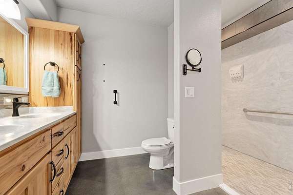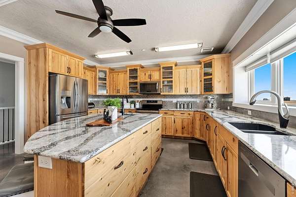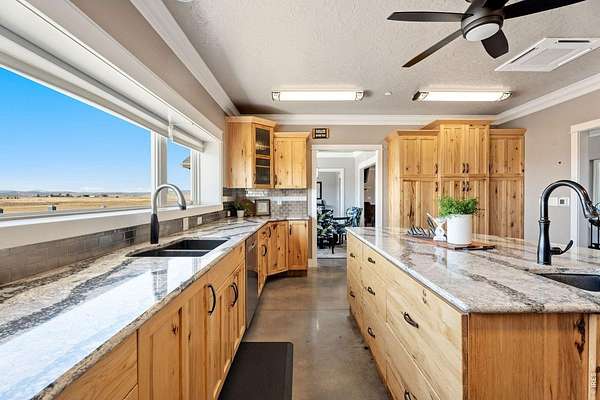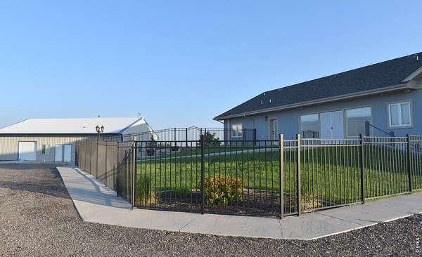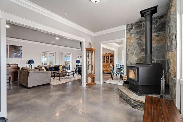 Welcome to your multi-generational, multi-use country retreat, where sprawling landscapes meet modern luxury in this well constructed 5 bedroom, 7 bath ranch-style home, all overlooking unobstructed mountain views. In addition to the primary suite with 5-piece bath, are 2 en-suite bedrooms. From the spacious home with room for everyone, to the multi-use 2,380 square foot workshop, to the fenced pastures & archery range, this property allows for many recreation possibilities with no HOA or covenants to restrict your lifestyle. Discover the epitome of energy efficiency and durability, thanks to Insulated Concrete Form (ICF) Construction. Polished concrete floors flow seamlessly throughout the spacious interior, complemented by 9 foot ceilings and luxury finishes that elevate every corner of this home. With an all-electric setup and easy maintenance exterior, this home seamlessly integrates sustainable living with modern comfort. Allergy friendly ductless heat/cooling system & all hard surface flooring throughout. Also features an exercise room with an Endless Pools swim in place pool included. A portion of the lower walk-out level is dedicated to a comfortable in-law suite designed for accessibility. Extensive outdoor areas including an almost full length front porch, covered walk-out patio/additional covered parking, back porch, & basketball/pickle ball court for entertaining and enjoying the outdoors. Landscaped for beauty and ease of maintenance. The fully insulated, fully finished, heated & cooled workshop features a kitchenette, large open area with one overhead door, individual office/hobby space and three bathrooms. Please download the property brochure with a complete list of features.