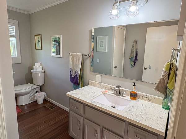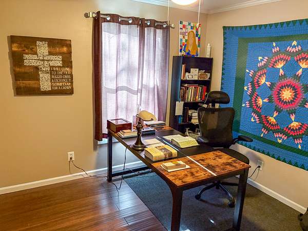 The home spans 1,951+/- square feet with an amazing kitchen that offers stainless steel appliances, an island and ample countertop space. The home also has an open concept living and dining room that walks out onto the back deck, as well as a master suite in the back, two additional nice-sized bedrooms, an additional bathroom and another room that could be used as a non-conforming bedroom or another office. The home also features new windows throughout, a mud/laundry room and an attached oversized one car garage. The dining room walks out to a beautiful deck space with a fire pit just below, offering the ideal location for entertaining guests or having your morning coffee.