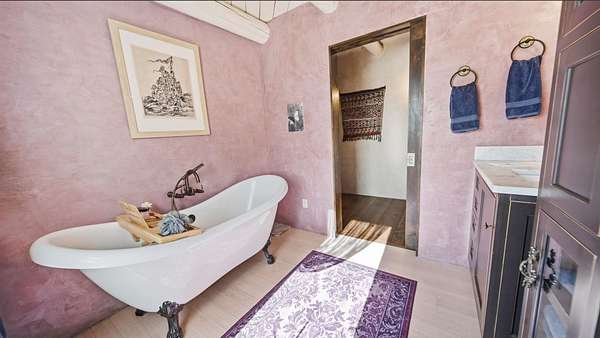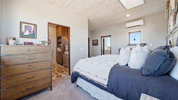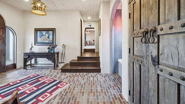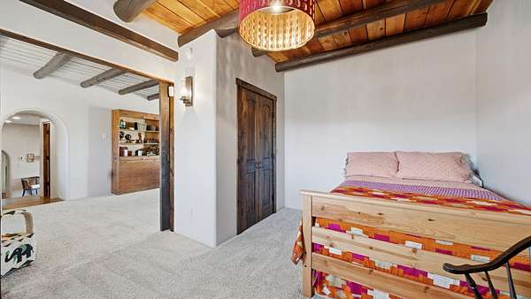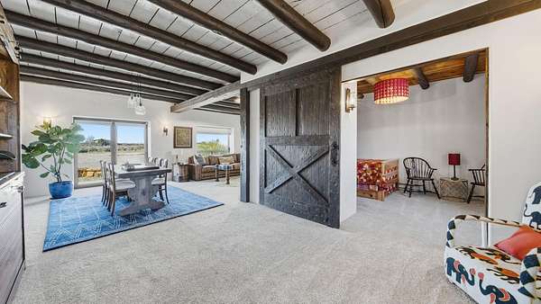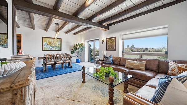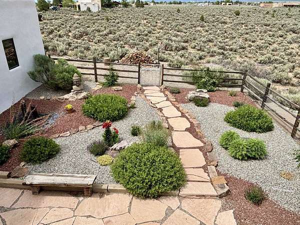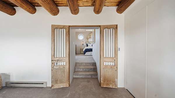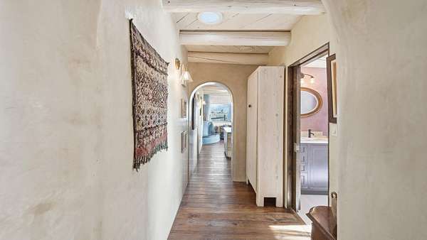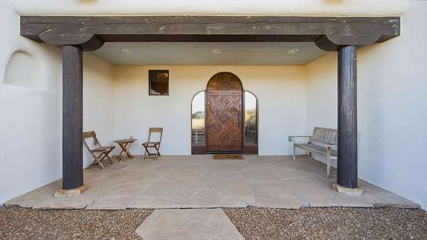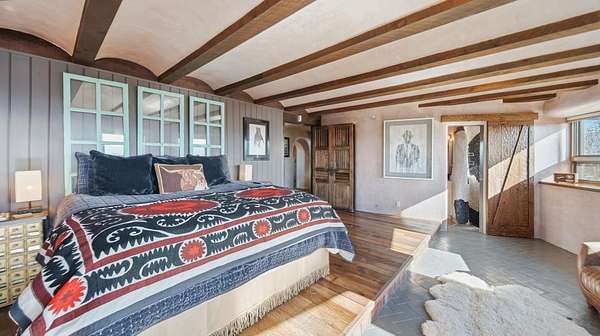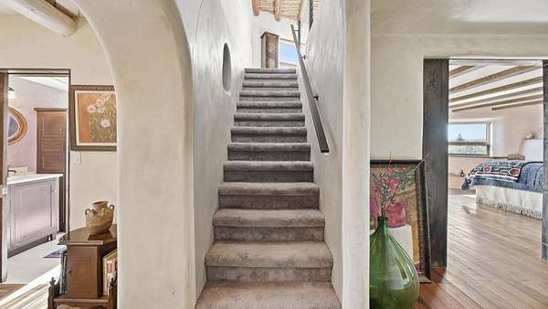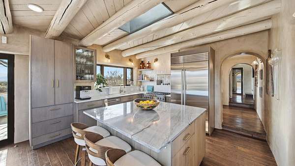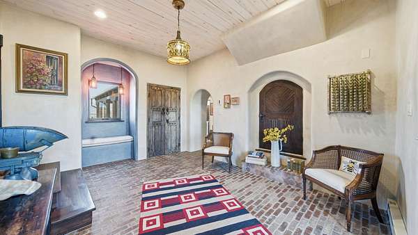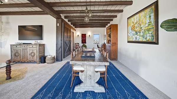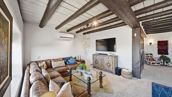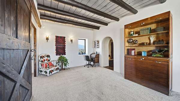 OVER $200,000 IN UPGRADES IN 2025! NEW ROOF, NEW SEPTIC, NEW STUCCO (12-year warranty), TWO MINI-SPLIT SYSTEMS, FULL LUXURY KITCHEN RENOVATION. Modern Adobe Mastery with unmatched location! This exquisite 3-bedroom, 3.5 bath true Taos adobe home offers 3,350 sqft of modern luxury. Perfectly placed - about 20 minutes to Taos Ski Valley and roughly 10 minutes or less to the Historic Taos Plaza - this home is sited on 2.27 acres in the highly sought after Blueberry Hill neighborhood in Taos. Panoramic views of Taos Mountain, Taos Valley, and the Sangre de Cristo range create the perfect backdrop for year-round mountain retreat living. Truly move-in ready, this immaculate home features diamond finish Venetian plaster, fresh paint, coved and viga ceilings, three wood-burning kiva fireplaces, handcrafted doors, designer lighting and Hunter Douglas blinds throughout. A newly renovated chef's kitchen/dining room features a kiva fireplace, top-of-the line Quartzite countertops, SubZero refrigeration, Wolf dual fuel six-burner gas range, microwave drawer, custom rift sawn white oak cabinetry and pantry with pullouts alongside an oversized island with ample storage and seating.A built-in dining nook with wrap-around banco bench that seats 8 comfortably is a true showstopper and features additional in-seat storage. Oversized picture windows, solar powered Velux skylight with rain sensor and glass exterior door offer abundant natural light and pulls the mountain landscape indoors. The kitchen/dining room opens to the north and south patios featuring mature landscaping, drip irrigation, basalt stone fountain and built-in banco seating for alfresco dining or cocktails. The home features two full primary suites. On the first level, escape to the oversized primary suite with a kiva fireplace, beam and coved ceiling, ensuite bath with walk-in pebble-tiled shower and large walk-in closet. The second level primary suite has a sunset balcony, operable skylight, and oversized picture window with Taos Mountain views. The modern ensuite bath features French limestone tile floor, Kohler Purist plumbing, walk-in shower with bench, oversized rain shower head and full body sprays. Multiple living spaces include a newly renovated 700 sf open living/dining space, guest bedroom (or bonus/office space) large enough to accommodate two full sized bunk beds sleeping up to 8. On the second floor, the upstairs great room showcases a stately kiva fireplace, authentic viga/latilla ceilings and large panoramic windows that mirror the primary suite below. This mountain sanctuary seamlessly blends luxury living with the beauty of northern New Mexico. Truly a rare gem in the heart of Taos.