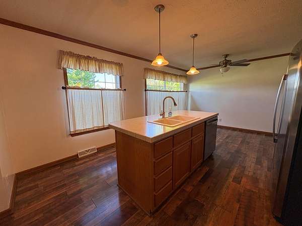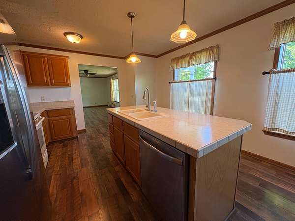 Est $1,248/moCheck out this well appointed 3 bed 2 bath manufactured home sitting on over 2 acres in Switzerland County. The home was built in 2006 and offers 1456 sq feet. Recent updates include flooring, paint and new carpet in the bedrooms. The oversized kitchen comes complete with appliances and the laundry room has cabinetry along with a wash sink. The bedrooms are good sized and have nice sized walk-in closets. Outside you have a nice front porch along with nice landscaping. Also a detached pole barn garage with two overhead doors complete with openers and with a covered porch area to enjoy. Come check this one out before it's too late!