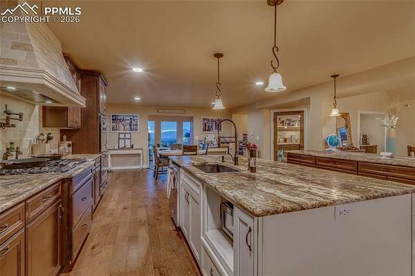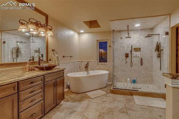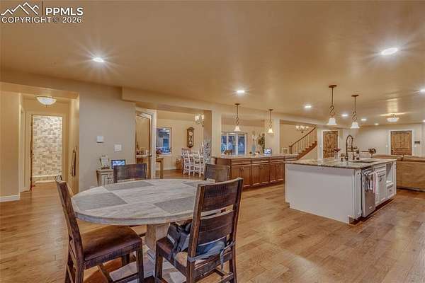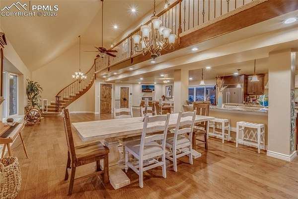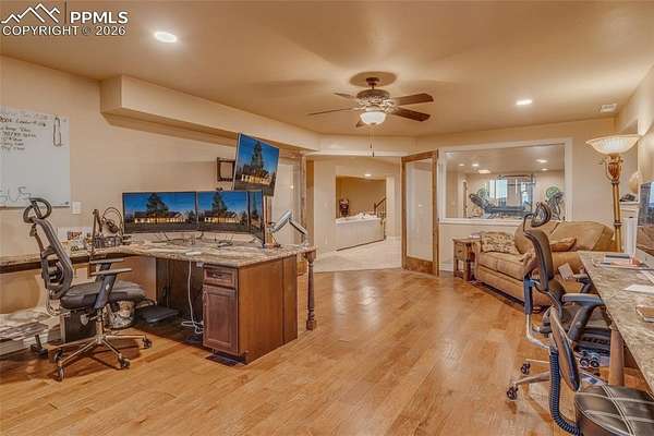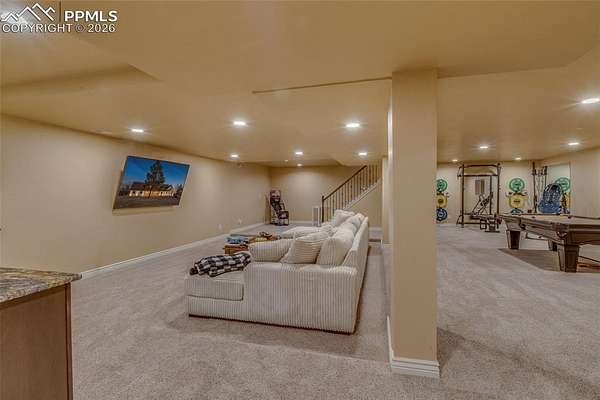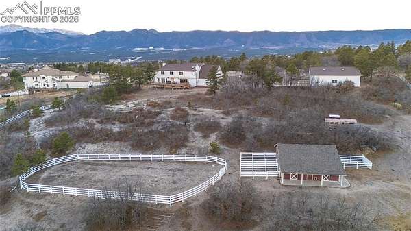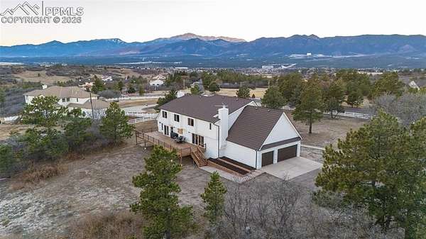Rare opportunity to own 5.2 private acres in the highly sought-after Sun Hills area of North Colorado Springs with stunning Pikes Peak and Front Range views. This spacious 5,400+ sq ft home offers 4 bedrooms and 4 bathrooms with expansive living areas designed for both comfortable living and entertaining. Large windows bring in natural light while capturing the incredible Colorado scenery. The usable acreage, mature trees, and peaceful setting create the perfect Colorado lifestyle. The property also features a separate horse stalls/lean to, riding arena and a huge detached outbuilding garage that can hold all the toys you need. Truly ideal for horses, equipment, toys, or workshop space. Enjoy the best of both worlds-quiet country living just minutes from shopping, dining, and top-rated Academy District 20 schools. Properties with this much land, privacy, and views in this location rarely come available.
