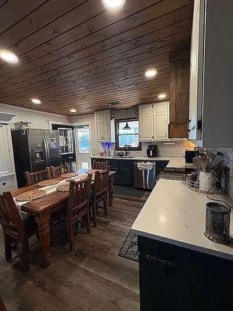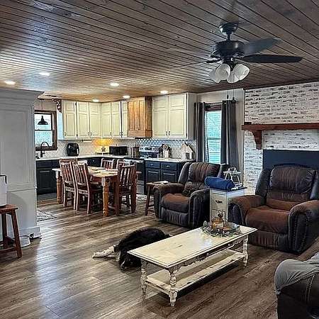- Two fireplaces - one gas and one fully functioning potbelly stove- Main level includes a completely remodeled living room, kitchen, bathroom, and primary suite with bathroom- Newly remodeled primary bathroom with walk-in shower and walk-in closet- Basement includes kitchen, living area with a potbelly stove, 2 bedrooms, bathroom, and laundry room