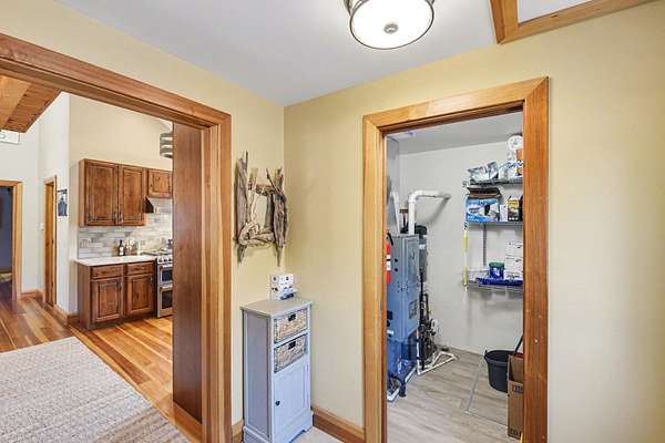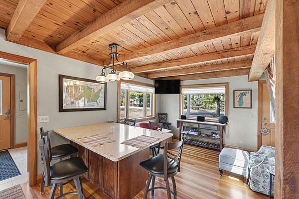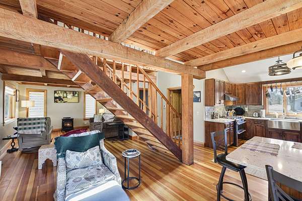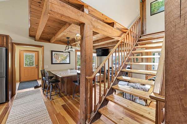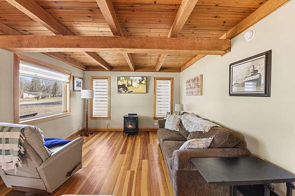 Beautifully renovated 3 bed/2 bath home on 3 acres with Andersen windows, newer roof, cedar siding, quartz counters, custom built-ins, wood floors, and updated mechanicals. Main-floor primary suite with private ensuite offers comfort and ease. Heated garage includes in-floor heat, sleeping quarters, kitchenette, half bath, and custom bar. Separate sauna building with sleeping quarters, shower, vanity, full sauna, and newer hot tub creates a spa-like escape. 36x56 pole barn with drive-through doors, cement floors, and electric. Full circle paved drive. Minutes from Big Manistee River, Bear Creek, Lake Michigan, and Federal Land. A rare blend of luxury, accessibility, privacy, and outdoor access.