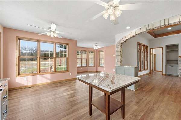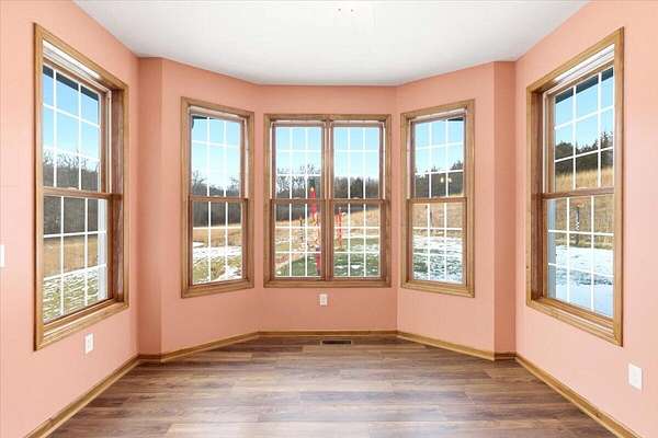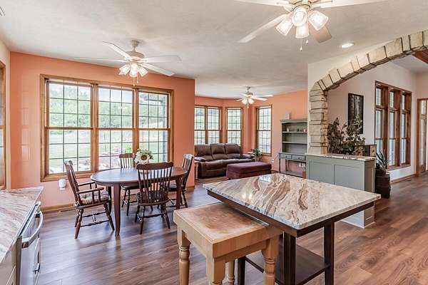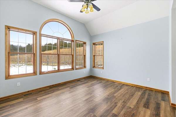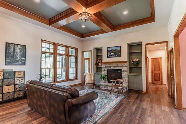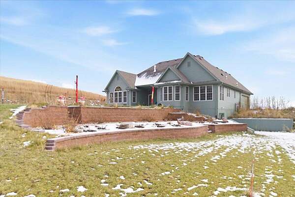 This home is designed with purpose & is nestled in the serene hills of Fremont County, just 1/3 mile off pavement. Property spans over 20 acres with native prairie, timber, & a winding creek. Inside are high coffered ceilings, exquisite stonework, & windows in every direction. The open-concept kitchen features a sitting area & butler's pantry, perfect for entertaining or quiet mornings.A finished bonus room is above the garage & offers flexibility for a fourth bedroom, art studio, or home office. Built in 2022, this like-new home combines beautiful design with practical efficiency, showcasing quality materials & high-performance systems throughout. The walkout basement is ready for your personal finishing touch.40 minutes to Omaha & 3 miles from Interstate 29.