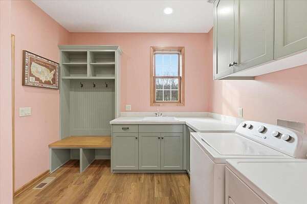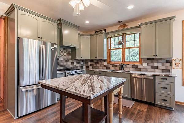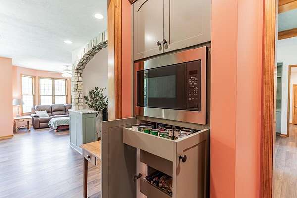 - Ceiling Fans, Custom Cabinets, Dishwasher, Extra Built-Ins, Garbage Disposal, Gas Range, Microwave, Pantry, Refrigerator, Solid Surface CNTR, Sump Pumps, Walk-In Closets, Water Soft-Own