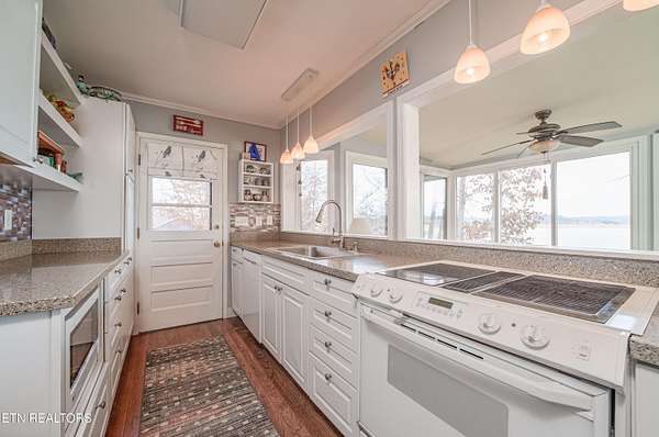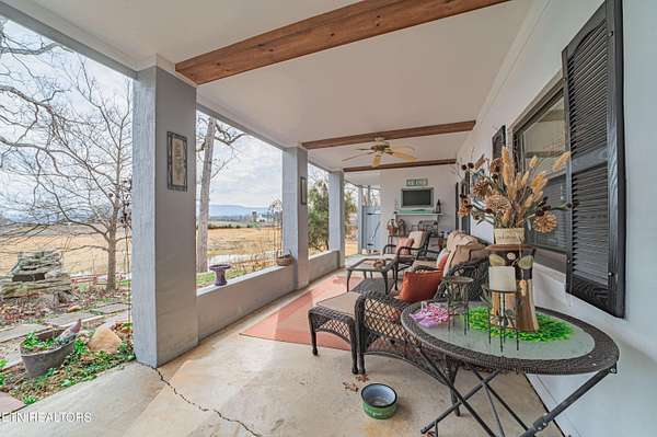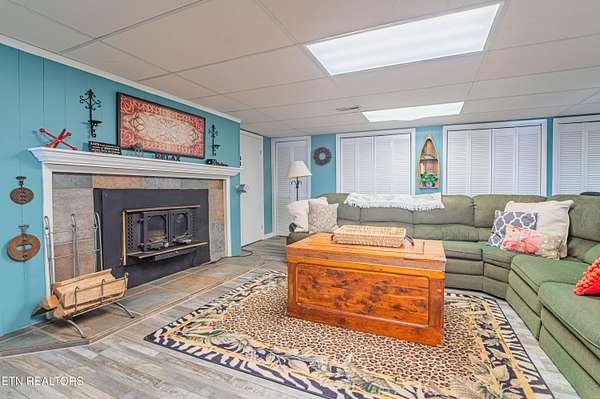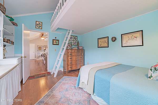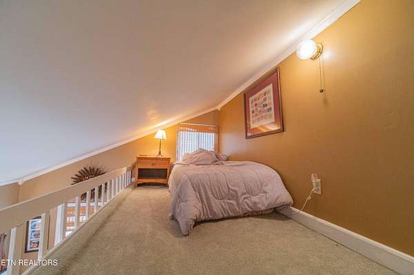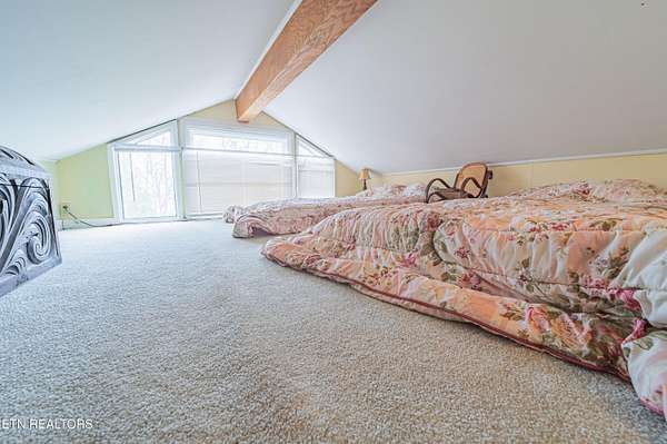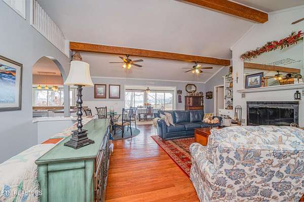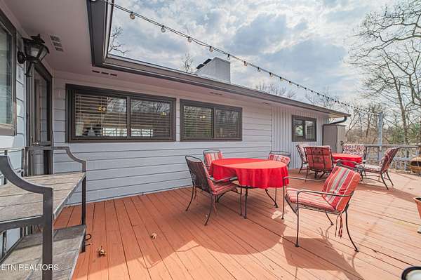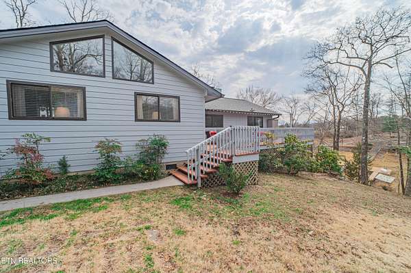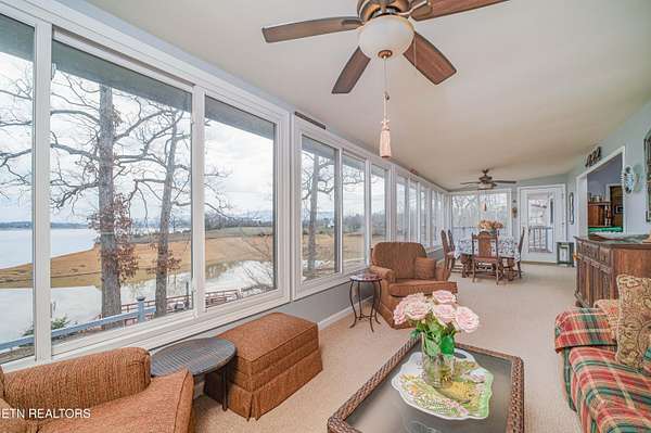 First time ever on the market, situated on 2.4 acres of exceptionally rare flat-to-rolling lakefront, 1449 Bucks Point Way offers nearly 1,000 feet of shoreline encompassing three sides of the property. This is a true year-round deep-water location, allowing for permanent dock access 365 days a year. The gentle slope and abundant landscaping provide easy, accessible entry to the water for all ages. This 2,700-square-foot ranch features an open-concept great room anchored by vaulted ceilings. The primary suite follows the same architectural theme, with vaulted ceilings and oversized windows that flood the ensuite and bedroom with natural light. A highlight of the main floor is the four-season room, featuring new windows that provide a 180-degree panoramic view of the lake. Additionally, three separate loft areas offer versatile space for guests or extended stays. The walk-out basement is designed for utility and entertainment, featuring a large den, kitchenette, full bath, and a dedicated workshop/craft room with ample storage. Outside, the covered porch includes an outdoor shower for convenience after a day on the water. Additionally the property features a ''she-shed'' equipped with electricity and a spacious deck located directly at the water's edge. The sale includes two additional lots, providing significant privacy or future development potential. Mechanically sound and move-in ready with a brand-new roof and gutters, this is a unique opportunity to own a legacy lakefront estate with unmatched water access and privacy in the Knoxville area. Just minutes to downtown Dandridge by boat or car. Call today to schedule your private tour.