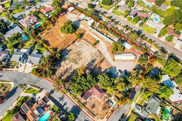 PRIME GLENDORA INFILL OPPORTUNITY - E-5 ZONING Incredible infill development opportunity in one of Glendora's most desirable neighborhoods! Formerly the "Three Oak Ranch," this large cul-de-sac property is ready for a builder's vision. Approximately 3.82 acres and composed of 2 parcels (8656-007-050 and 8656-037-013. E-5 zoning allows up to ~4.1 units/acre, with minimum 10,500 sq ft lots (85' x 100' minimum dimensions) and up to 2-story homes, standard setbacks (25' front, 7' side, 35' rear). E-5 zoning is eligible for ADUs and SB-9 units (verify with City of Glendora). Marketed for land value only. 100-ft Metropolitan Water District (MWD) easement impacts site but buildable lots can be configured around it. A rare chance to create a small subdivision of luxury homes in a sought-after Glendora location. Buyer to verify all development opportunities with the City.
