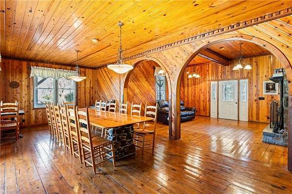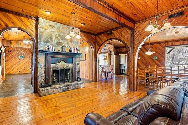 A little piece of paradise just outside of Auburn! Great for a growing family or investment property. This serene "getaway" just minutes from Auburn and Lake Martin has a true lodge feel inside and out. From the tongue & groove heart pine flooring & pine walls to the front porch swings, its a wonderful place to relax and enjoy some family time. This 6BR/4.5B home is set up for easy exterior stair access to any of the 3 floors. Main level can hold a crowd w/ a nice size LR adjacent to the game room w/ pool table. Built in farm table in DR seats 16, kitchen has gas range, double ovens & nice size pantry with extra fridge. Second level has 4BR/2B along w/ its own generously sized den. Third level has an additional guest suite w/ BR, and summer kitchen area. Primary suite is located on the 3rd floor and it is a suite! Raised sleeping quarters overlook the private den and office area. Nice size bath with shower, jetted tub and double vanities. Need more? Grand workshop w/ endless possibilities. Lovely gardens around property. Must See!