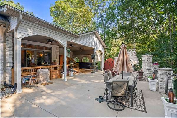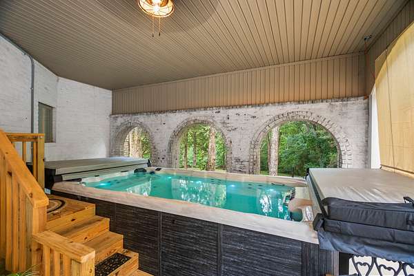 Welcome to 144A Dogwood Springs Drive - your private Mediterranean retreat just beyond the edge of town. Rarely does a home like this become available in this community, making it a truly unique opportunity. Surrounded by prestigious residences set on generous acreage, this area has long been admired for the quality and character of its homes. Over the years, it has even drawn iconic names from Music City, with this very home more recently belonging to a well-known country music artist. As you approach, ponds, rolling fields, and mature trees set the scene before the concrete drive leads to your private estate. The all-brick main residence offers 3,290 square feet while the private guest house adds 834 square feet, together providing four bedrooms and three baths on over four and a half acres with a picturesque creek along the back. The main home features a welcoming covered porch, a great room with fireplace, office, and a custom kitchen with granite countertops, gas range, double ovens, and a large island with bar seating. Two private suites include walk-in closets, with the primary offering its own fireplace, clawfoot tub, frameless glass shower, and French doors with powered drapery opening to a private back porch entrance. Outdoor living includes both front and back porches, a sauna and swim spa, and an oversized patio with stonework and a wood-burning fire place -- perfect for summer afternoons or crisp fall evenings. A greenhouse with raised beds and a detached storage shed with power and lighting add further utility. The guest house is fully equipped with a covered porch and pergola, entertaining deck, living room with abundant windows, full kitchen with granite and appliances, its own laundry, a spacious suite, and a full bath -- providing comfort and privacy for extended family or long-term guests. Updates include newer Anderson windows, hardwood floors, HVAC in both homes, new roofs, tankless water heaters, and leaf guard gutters.