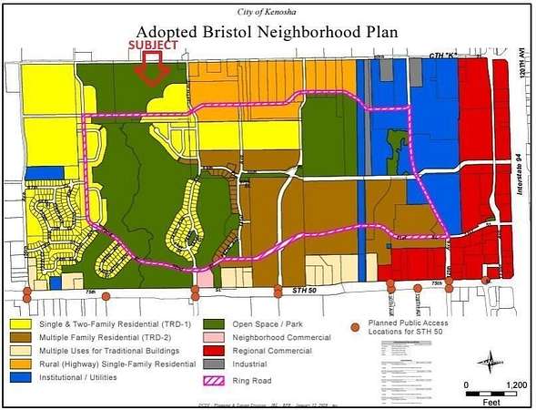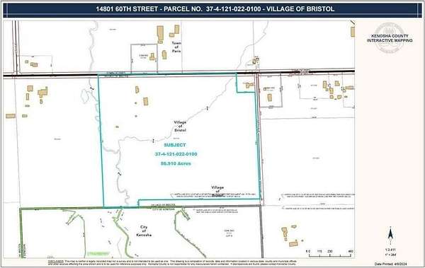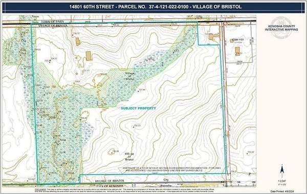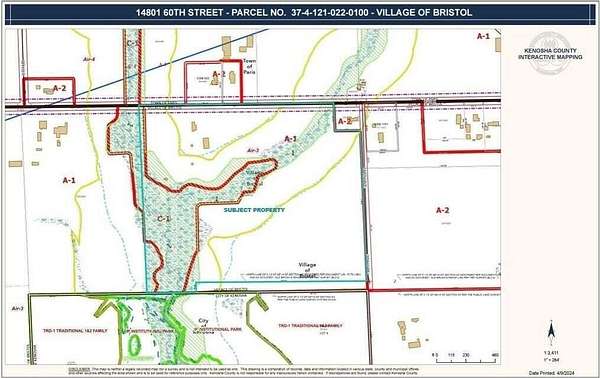 Est $13,856/mo33.60 acres located off 60th St and 144th Ave. CSM splitting parcels has been completed with lot lines running along the Root River and tributary. Partial wetlands-floodplains. Zoned A-1 and C-1. Property has potential for agricultural or residential land use. Located within Bristol's City of Kenosha Growth Area, would have potential for utilities, including sewer and water, to be extended from the adjacent Strawberry Creek subdivision to the south. According to the adopted future land use plan, the subject has a future land use plan mixed between single and two-family residential (TRD-1) and Open Space / Park. Property Annexed into City of Kenosha.