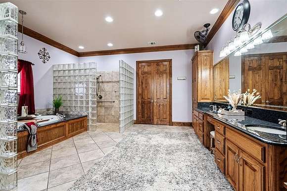 - Built-In Features, Built-In Wine Cooler, Cable TV Available, Chandelier, Decorative Lighting, Double Vanity, Eat-In Kitchen, Granite Counters, Kitchen Island, Natural Woodwork, Open Floorplan, Paneling, Pantry, Second Primary Bedroom, Vaulted Ceiling(s), Walk-In Closet(s), Wet Bar