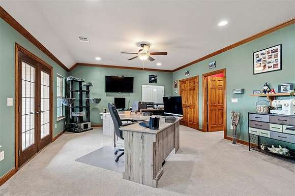 Discover the ultimate retreat on 10 pristine acres! From the moment you walk in, the show stopping staircase, rich hardwood floors, elegant crown molding, and thoughtfully designed floor plan will capture your heart. This custom built home boasts 3 spacious bedrooms on the main floor, with an additional master upstairs also makes a perfect second living area, study or media room. The gourmet kitchen is a chef's dream, complete with a walk-in pantry that doubles as a storm shelter, double ovens, pot filler and so much more. The luxurious master suite offers a cozy seating area, a deep soaking tub, a vast walk-in shower, and a closet that's truly dreamworthy. Step outside to your personal oasis, complete with an in-ground gunite pool, spa, 30x60 workshop, and a roping arena. The property is fully pipe-fenced and cross-fenced, making it ideal for your horses and cattle. This isn't just a home, if you're looking for a private and luxurious country lifestyle, this is it!