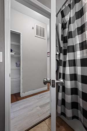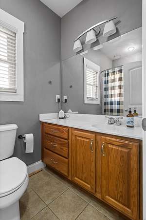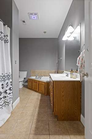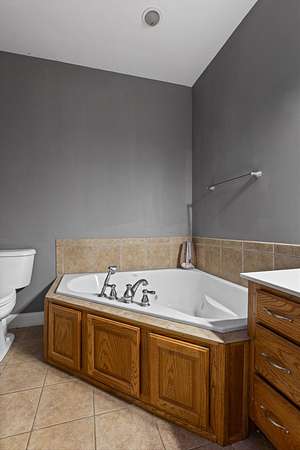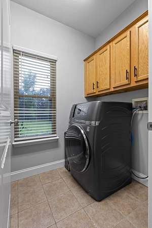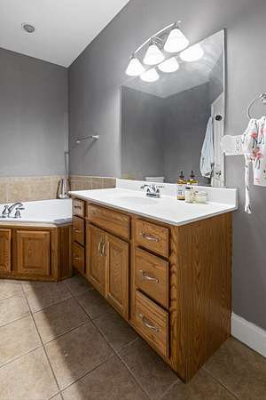 The kitchen features a bright bay-window breakfast nook--perfect for morning coffee while planning your next phase of updates. The main-level primary suite offers soaring ceilings, a bay-window seating area, and a spacious bath with both a walk-in shower and oversized jetted tub--ready for modernization into your personal retreat. Two additional bedrooms, one with its own bay window, share a full bath with a tub-shower combo. A dedicated laundry room provides abundant storage and functionality.