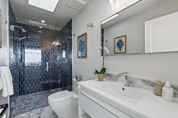- High Ceiling, Open Beam Ceiling, Skylight, Sprinkler Fire System, Video / Audio System, Walk-In Closet, Wet Bar