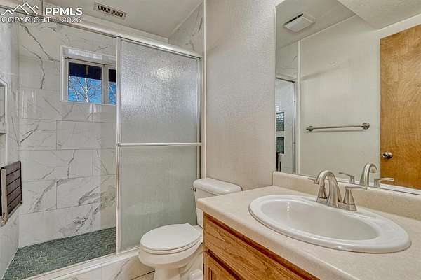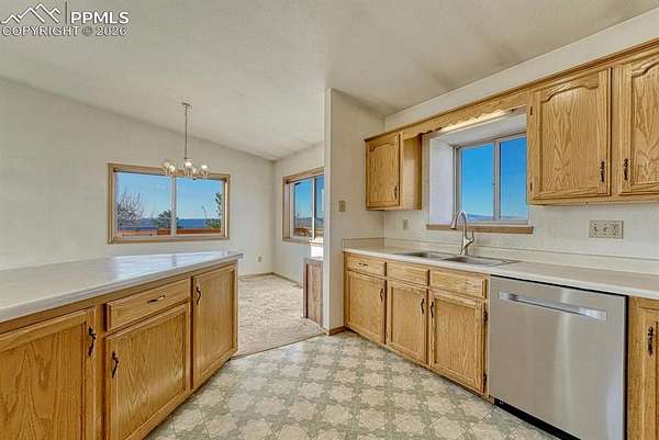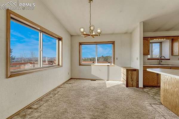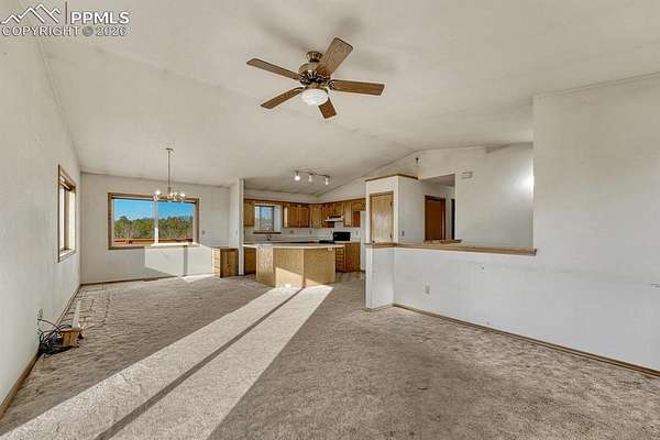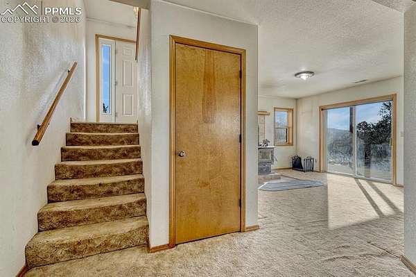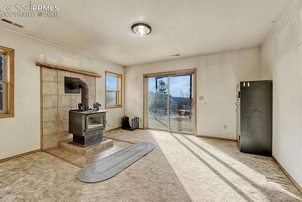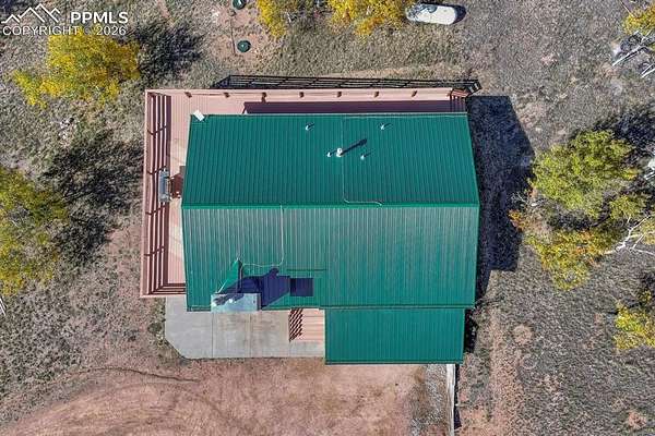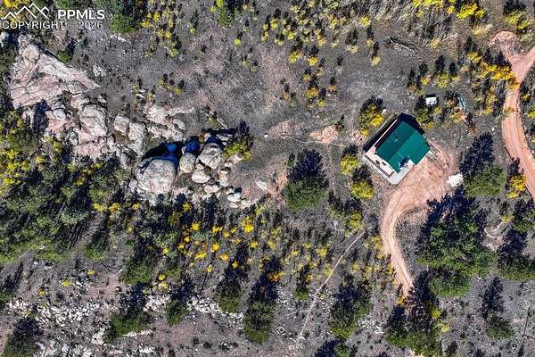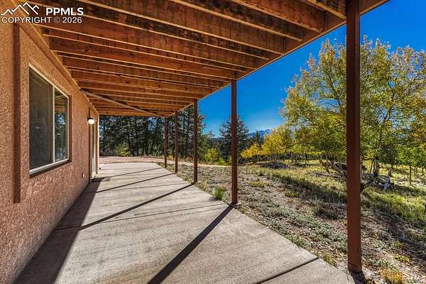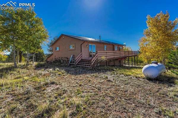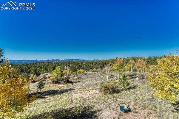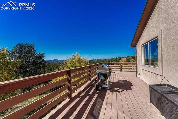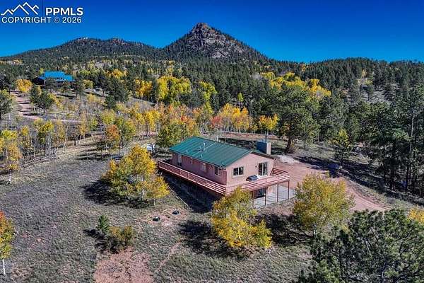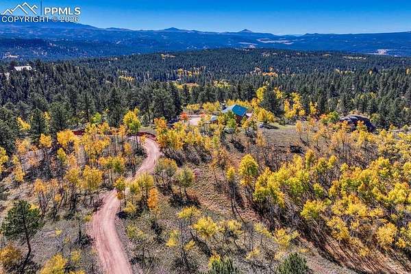Investor Special! Discover the potential of this mountain retreat set on 11.79 acres with breathtaking 360-degree mountain views, including Pikes Peak, the Front Range, & rolling treed hills. This is a rare opportunity to create a true Colorado mountain escape where wide-open space, fresh air, & unforgettable scenery define everyday living. The raised ranch-style home offers five bedrooms, three bathrooms, & an attached two-car garage, providing a versatile layout ideal for a full-time residence or weekend getaway. The bright, open interior is filled with natural light & endless potential-ready for a thoughtful renovation to transform it into the ultimate high-country haven. The main level features a living room framed by a fireplace, a dining area & open concept kitchen with an island. Large sliding doors open to an expansive deck that showcases sweeping mountain vistas, creating an incredible setting for morning coffee, sunset dinners, & stargazing under clear Colorado skies. Stunning views can be enjoyed from nearly every window in the home. Down the hall, you'll find two bedrooms, a full bathroom, & the primary suite. The primary suite includes a 3/4 en-suite bathroom & walkout access to the wrap-around deck. The walkout basement adds valuable living space & flexibility, featuring a large family room ideal for entertaining, two additional bedrooms, a 3/4 bathroom with an updated shower, and a laundry room. While the interior offers an opportunity for customization, the exterior and systems have seen recent updates including newer stucco & concrete pad 2009, fresh paint on the garage & front door 2024, engineered wood deck 2009, pressure tank & added pump protection 2014, hot water heater 2019, furnace 2021, wood stove 2020, updated basement shower 2025 and a metal roof 2024, providing a strong foundation for future improvements inside. Selling "as-is", this property offers the chance to craft a one-of-a-kind mountain lifestyle in a truly stunning Colorado setting.