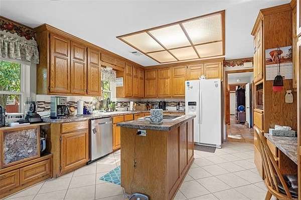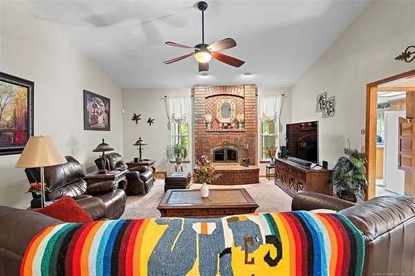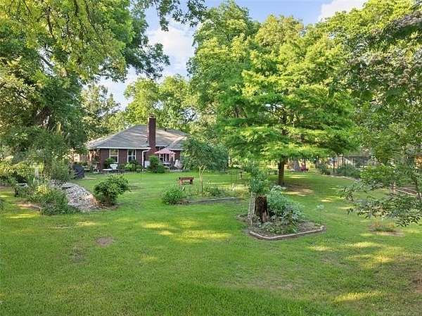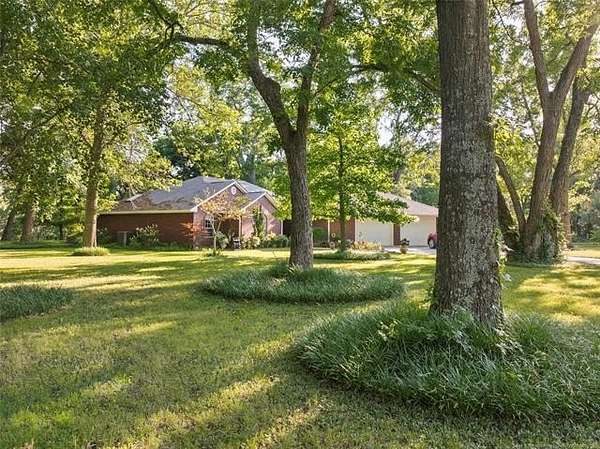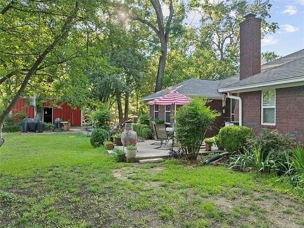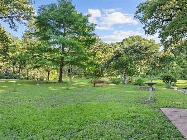 This beautiful, well cared for home is extra special and one of a kind because of its spectacular landscaped yard overlooking varied mature trees which are home to numerous birds and wildlife. This home is ideal for anyone to enjoy peace and tranquility in a beautiful natural setting. Enjoy the beauty of pecan trees, large, majestic oaks, sweet gum trees, and even harvest the fruit from peach, plum trees, an elderberry patch, and blackberries. There is even a place to plant a spring garden. The entry to the home has a winding path through bed of roses leading into a large entryway that stages the home. Step down into a spacious living area with a wood burning fireplace and new windows. The size master suite is envy of all, even having a large sitting area and an entry onto the back patio. The bath has a massive wrap around his and her closet, double sinks, large tub, shower, lots of storage cabinets and even dressing mirrors that are cabinets. The other bedrooms are nice sized and boast closets with built-in shelving units. Storage space in abundance including double sized entry closet and double sized hall linen closet, a place for everything. With a formal dining room, and a large family kitchen which has lots of cabinet space, a center island, a desk area, pantry, and a breakfast area that is really special as it is surrounded by large windows that gives an amazing view of the back yard. The attached oversized garage has plenty of room for two cars with separate doors, lots of storage space on the side and has a storm shelter in the slab that seats 8 people. The roof was replaced in 2023 using premium shingles that have resistance to wind and hail. The home has two driveways, one to the home and one to the shop. The shop has a pull up door for parking another car or boat and a walk-in door with lots of extra space for tools and lawn equipment. Also included is a handy storage building that has double-sided attic storage and shelving. (8 weeks closing)