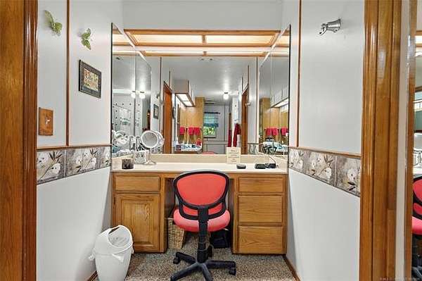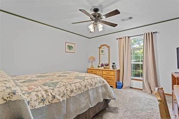 From Highway 77 go east out of Ardmore toward Lone Grove. Turn south on Foxden Road for about 1.25 miles to the entry of the Kenny Addition. Turn right onto Gayle Street. Turn left onto Chestnut Street and follow it to the end and curve right onto Cross Creek and follow to the property located at the end of the block just as the road curves right again.