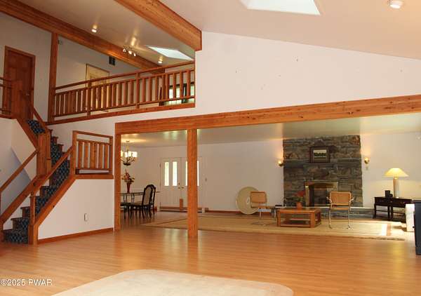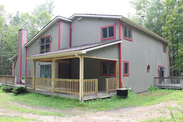 Situated on nearly 5 acres of land at the end of a cul-de-sac, surrounded by 2 large parcels of land and 2 vacant lots...this Contemporary home is 5,000 square feet and has a lot to offer...main level has an open floor plan with foyer, great room, living room with propane fireplace, dining room, kitchen, full bath, primary bedroom with primary bathroom suite...upper level has two bedrooms both with double closets, large bathroom, huge loft and accessible storage...lower level is partially finished with a Regency wood burning stove in the family room, bedroom, spare room, full bathroom, laundry room, second kitchen and two entries makes for a perfect in-law quarters...additional features includes small pond, plenty of decking for outdoor entertaining, 3 HVAC systems for forced hot air and central air conditioning, 2 hot water heaters for your choice of electric or propane, 4 skylights with 3 automatic and 1 manual, whole house was painted and new roof done in 2023...Wallenpaupack Area School District...easy access to Routes 80, 380 and 84...schedule an appointment today!