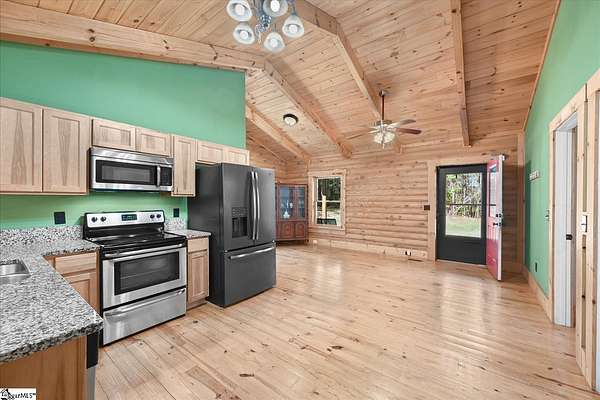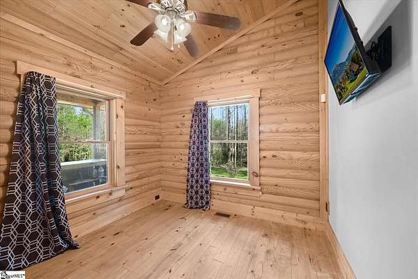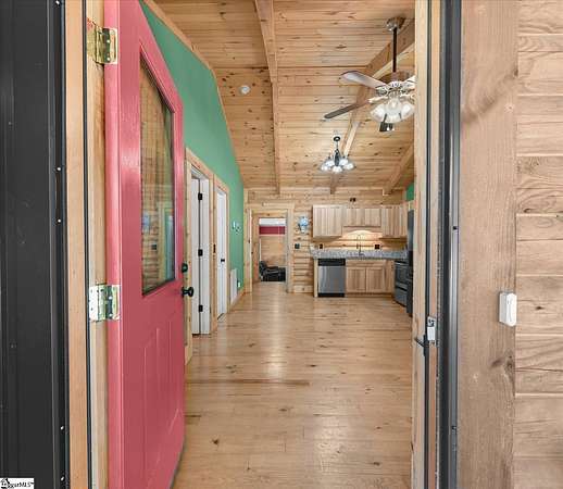 Looking for peace and serenity away from all of the hussle and bussle? Would you like enough room to plant a vegetable garden or have a few chickens and maybe more? Well, you don't have to look any further. Come check out this beautiful log cabin in the woods and away from it all!! Sit on the front porch in the mornings with your coffee or at the end of a long day and let it all unwind with the sounds of nature. This home boasts a huge living room/great room for all of your gatherings or just a huge sectional where you can spread out and relax. Kitchen has real wooden cabinets with soft close on drawers and doors. Kitchen and breakfast area are very spacious and lead to two of the bedrooms for kiddos or guest rooms. The master is on the other side of the house and is very private with it's full bathroom and walk in closet. With 2.01 acres, this home has so many uses and can transform into whatever your heart desires. Don't let this cabin slip through your fingers because it will be gone before you know it. 30 minutes from Greenville, 15-20 minutes to Travelers Rest, 15 minutes to downtown Pickens, and 10 minutes to Pumpkintown. Also 5 minutes to Rolling Green Golf Course.
