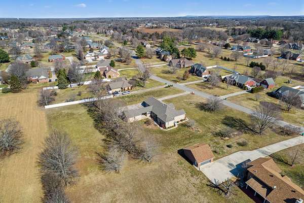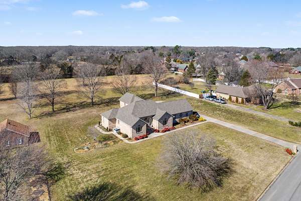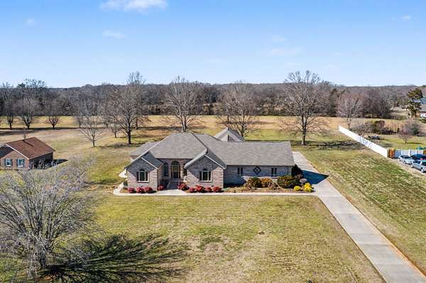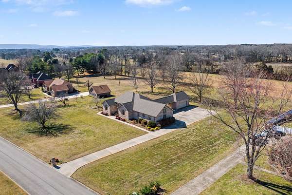 Welcome home to comfort, space, and peaceful surroundings in this beautifully designed mostly one-level home nestled on one of the largest lots in Franklin Hills-- a generous 1.64 acres. Thoughtfully laid out with everyday living on the main floor, this home is ideal for those seeking easy convenient living without sacrificing room to spread out. The main level features three spacious bedrooms and two and a half baths, while upstairs you'll find a bonus room/4th bedroom with its own closet-- perfect for guests, a hobby room, or extra storage. At the heart of the home is a long, spacious kitchen with rich granite countertops, abundant cabinetry, and plenty of room for cooking and gathering. A formal dining room with beautiful built-ins adds charm and character for hosting holidays and special meals. Relax in the bright sunroom overlooking a huge backyard that backs up to undeveloped farmland, offering peaceful views and privacy. The outdoor space is ideal for gardening, entertaining, or even the addition of that in-ground swimming pool you've always wanted. Car lovers and hobbyists will appreciate the garage set-up: a 2-car attached garage large enough to comfortably fit three vehicles, plus a 2-car detached garage with additional second-floor storage-- perfect for tools, toys, or workshop space. Also included is a covered breezeway connecting the detached garage to the home. Additional features include an underground electric dog fence and an encapsulated crawlspace. The location is unbeatable due to the fact that it is only 1 mile to the nearest boat launching ramp on Tims Ford Lake which is inside the Winchester City Park. This property is also super convenient to local groceries, dining, and the widely popular Historic Downtown District of Winchester. In summary, this one-owner home was built to live in and is ready for its next family!
