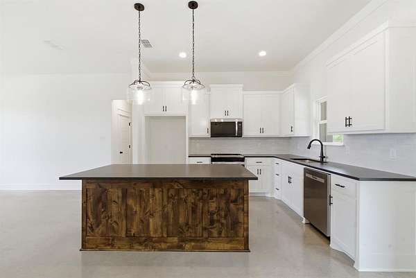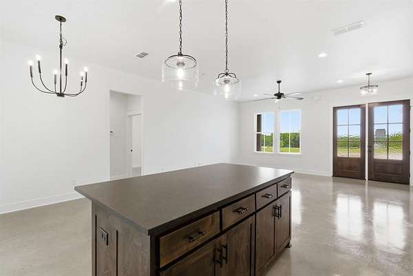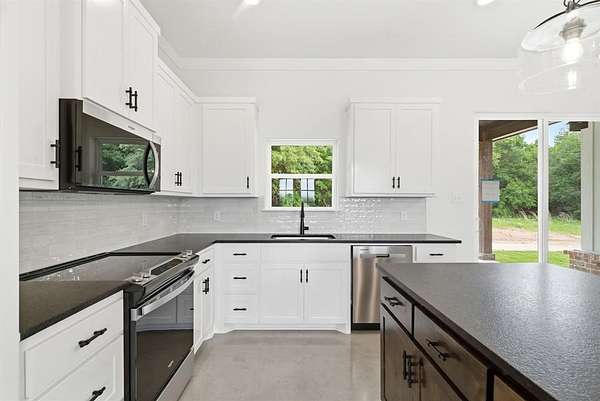 This newly constructed home by Barcelona Custom home features an open-concept layout with generous living spaces and large windows that provide ample natural light. The kitchen is equipped with quartz countertops, custom cabinetry, and modern fixtures. Luxury bathrooms offer sleek tile finishes, and spacious closets provide ample storage. Custom finishes and detailed millwork are found throughout the home, reflecting the builder’s commitment to quality and craftsmanship. A covered patio overlooks the backyard, offering space for outdoor living. Situated on a 2.1-acre lot in the Graystone Estates community, the home provides privacy, room to grow, and the flexibility of rural living—horses allowed, no HOA, and a private water well for added independence. Built with durable materials and thoughtful design, this home is move-in ready and designed for everyday comfort. Residents of Graystone Estates enjoy prairie views and a quiet natural setting, while still benefiting from easy access to nearby cities. The property is conveniently located just 10 minutes from Weatherford and approximately 45 minutes from Fort Worth, making commuting and daily errands simple. A third-party 10-year structural warranty is included for added peace of mind. School District: Millsap ISD