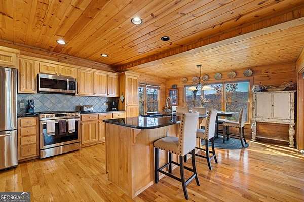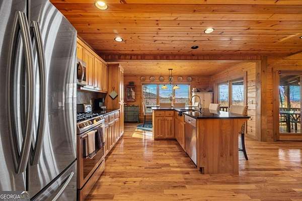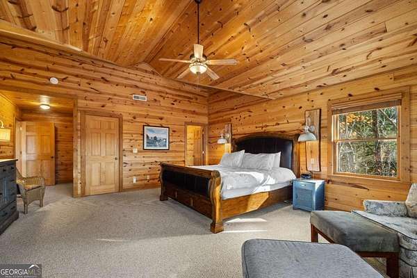 Experience your own private, turn-key furnished retreat nestled within an exclusive gated community. For those with a spirit of adventure, nearby USFS land provides ample opportunities for hiking and biking, while the Toccoa River-just a 10-minute drive away-offers kayaking and fly fishing. This custom-built 3-bedroom, 3-bathroom log lodge, situated less than 20 minutes from Blue Ridge, boasts stunning long-range mountain and sunset views. The great room impresses with its grand fireplace and exposed beams, and the modern kitchen features granite countertops and stainless steel appliances. With a convenient main-level laundry room and a spacious master suite complete with a loft, this cabin holds endless possibilities as a rental property, a second home, or your primary residence!