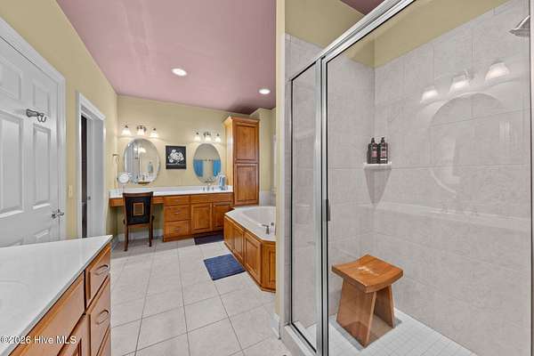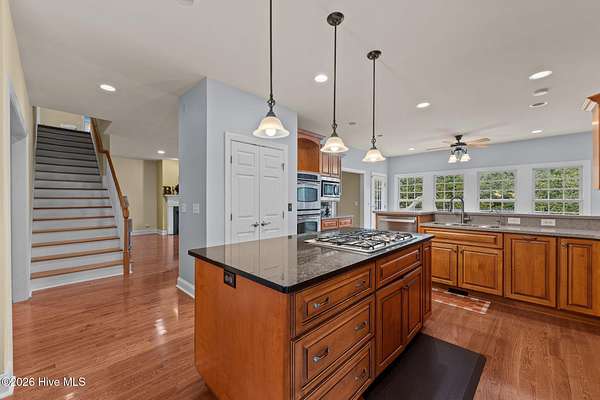 - Blinds/Shades, Ceiling Fan(s), Central Vacuum, Gas Log, Kitchen Island, Master Downstairs, Mud Room, Solid Surface, Walk-In Closet(s), Walk-In Shower, Whole-Home Generator