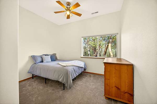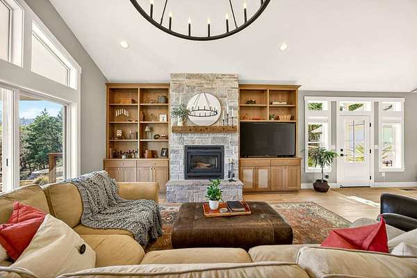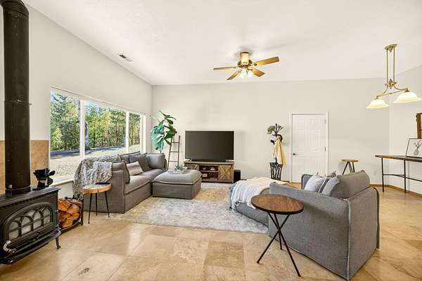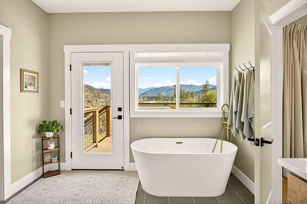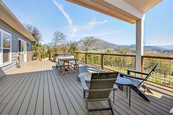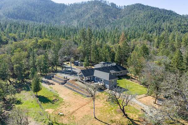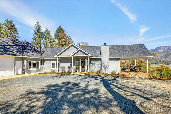 Discover your private oasis on 17 wooded acres. 3 spacious bedrooms & 4 full bathrooms. Enjoy heated floors in primary suite, vaulted ceilings in the family room, & a state-of-the-art A/C system w/air scrubber & UV light for pristine air quality. Home is designed for comfort & convenience, boasting 2 full kitchens, a high-efficiency wood fireplace & fresh air exchange venting. Enjoy high-quality GE Cafe appliances, quartzite countertops, and a custom kitchen design in the main home. 2 acres fenced w/an electric gated entry & offers stunning views from deck, complete with a hot tub. Ideal for multi-generational living, it includes 2 laundry areas, an oversized 3-car garage, and ample storage options. With a newer roof & low taxes, this home is just one minute from Cantrell Buckley Park and the Applegate River. Experience the blend of luxury and nature in this exceptional retreat w/access to 1000's of BLM trails! Seller is licensed Realtor in Oregon