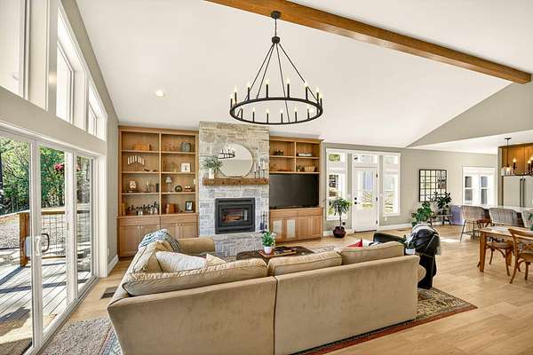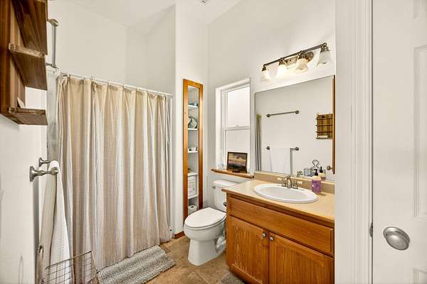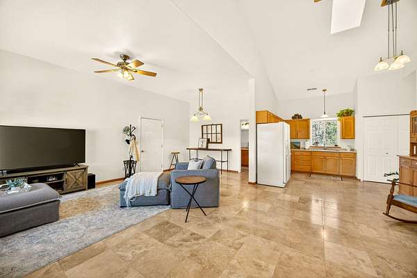 - Breakfast Bar, Built-In Features, Ceiling Fan(s), Central Vacuum, Double Vanity, Enclosed Toilet(s), Fiberglass Stall Shower, In-Law Floorplan, Kitchen Island, Open Floorplan, Pantry, Primary Downstairs, Smart Thermostat, Soaking Tub, Solar Tube(s), Stone Counters, Vaulted Ceiling(s)