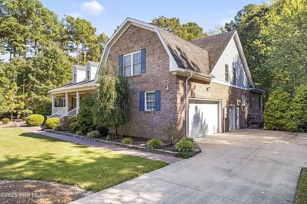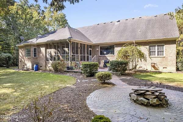 This beautifully maintained brick ranch is ready for its next owners to enjoy the peaceful charm of the Albemarle Plantation- a premier waterfront community offering resort-style amenities. Nestled on nearly 2 private acres, this home provides the perfect balance of tranquility and convenience. Inside, you'll find 3 spacious bedrooms, 3.5 baths, a dedicated home office, and a bonus room above the garage- ideal for guests, a hobby space, or a media room. Relax on the expansive front porch or sip your morning coffee from the screened porch overlooking the secluded backyard. You can't beat the northeastern NC weather! Also take note that this home in not in a flood zone- no flood insurance needed! Bring your boat and golf clubs and cart-this vibrant community features its own 18-hole golf course, full-service marina, clubhouse, restaurant, pool, and more. This home also features your own golf cart garage! Experience the lifestyle you've been dreaming of-welcome home!