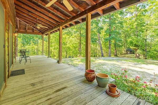 Tucked away on the edge of the South Mountains in Western North Carolina, this charming cabin on 8+ acres offers the perfect blend of rustic beauty and modern comfort. Surrounded by towering hardwoods and the sounds of nature, you'll enjoy the privacy of this natural retreat where you can peacefully unplug and unwind. Roam and enjoy this property and trails of the adjacent state park. The cabin features: a Living Room with vaulted ceiling, warm wood interiors, a floor to ceiling stone fireplace, and west facing picture windows with spectacular sunset views. Step outside onto the wraparound porch to enjoy a beverage among the trees and evenings under a blanket of stars. The Upper Bath offers a new walk-in tiled shower (2024) and a jet tub. A new HVAC with Nest Thermo (2023), new well and pump (2022), metal roof (2021) and outdoor shed. Whether you're looking for a quiet getaway, 2nd home, or a full-time mountain escape, this cabin embodies the timeless magic of life in the North Carolina mountains. Walk across the street to 500 acres of NC State Forest protected gamelands. (Property is 20-30 Minutes central to Marion, Rutherfordton, Forest City & Morganton).