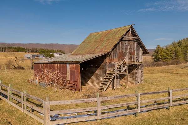 If you love Wyoming, this is your slice of it right here in the Blue Ridge Mountains of Virginia! ! This move-in ready home has been meticulously cared for and sits on over 10 acres, complete with a garage/workshop, small orchard, barn, a spring for endless water, and stunning mountain views. (Peep the Tetons on the front of the porch) It's the perfect spot for your hobby farm-bring the horses, cattle, sheep, and even the dogs, and let them all roam free! It even has a cattery or doghouse whichever you prefer behind the house! Step into the heated and cooled garage, roll up the far door, and relax on the small balcony while soaking in the scenery. Inside, the vintage-style kitchen features replicated retro appliances, giving it a charming 50s vibe, while stained glass windows in the primary bedroom add a unique touch. Downstairs offers a second bedroom and a cozy den with a wood-burning stove for ultimate comfort. Step out onto the patio, take in the mountain views, and enjoy your coffee. THIS PLACE IS ADORABLE!! Call to schedule your appointment I promise it won't last long!