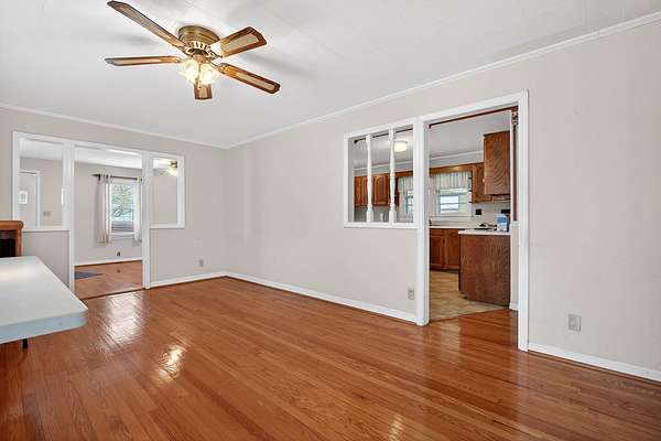 The Estate of John and Frances England Ranch style Brick three bedroom one and a half bath. Living room, Dining room den combo, Sunroom, utility room. Custom oak cabinets and beautiful hardwood floors throughout. CH&A natural gas new water heater installed one year ago, Updated breaker box 200-amp service summer 2025. There is a shop 14x28 with electricity concrete floor. Two sheds for lawnmowers and tools. Paved driveway with one car carport. This house has been in the England family since 1971. This house is ready to move into.