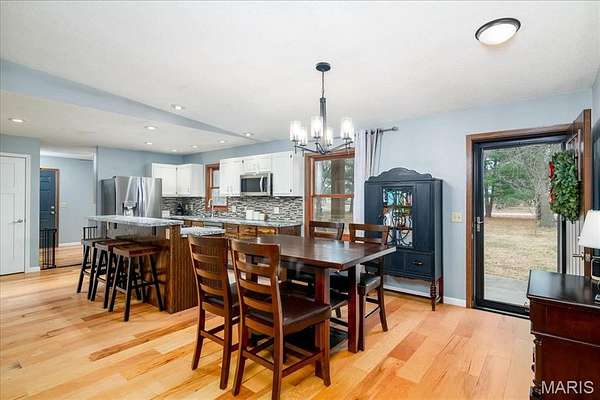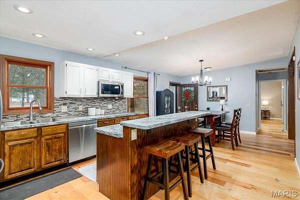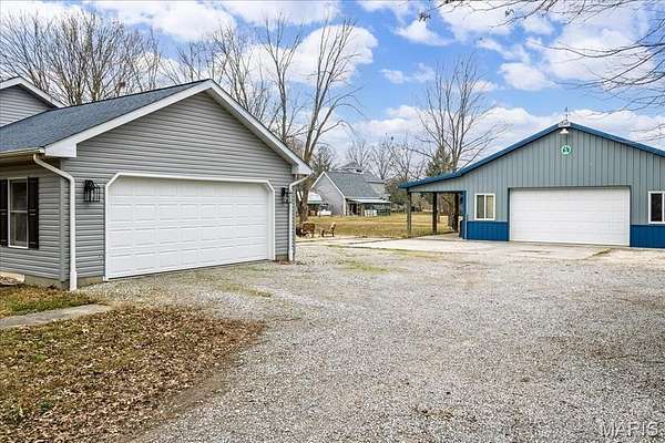 Discover this completely updated 3-bedroom, 2-bath home perfectly situated on 3.39 scenic acres, offering space, comfort, and exceptional functionality. The home features a large kitchen and dining area with custom cabinetry, stainless steel appliances, and engineered wood flooring, ideal for both everyday living and entertaining. Just off the kitchen, enjoy a spacious family room and a newly added four-seasons room that opens to a massive stone paver patio, creating the perfect indoor-outdoor connection. The primary bedroom is a private retreat, complete with walk-in closets and a stunning custom tile walk-in shower. Additional highlights include an attached two-car garage and an impressive 30x30 insulated outbuilding with a 10x30 covered porch. This versatile space offers a concrete floor, separate electric, heat, and a full loft above with staircase access providing abundant storage or workspace potential. With thoughtful updates throughout, generous living spaces, and exceptional outdoor amenities, this property offers the perfect blend of modern comfort and country living with quick access to I-64 and close proximity to convenient shopping in Shiloh, as well as popular employment hubs like Mascoutah and Scott Air Force Base. The property is enhanced by a beautiful mix of mature trees, including pecan, apple, and pear, offering both natural beauty and seasonal harvests.