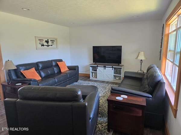 In Clarkrange take Rhum Rd to the west. House is located at the end on the road on the right.