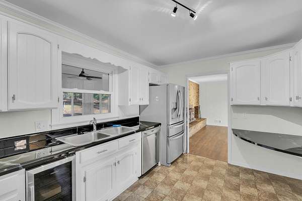 - Countertops-Laminate, Fireplace, Jetted Tub, Utility Sink, Window TRMNTS-Some Remain