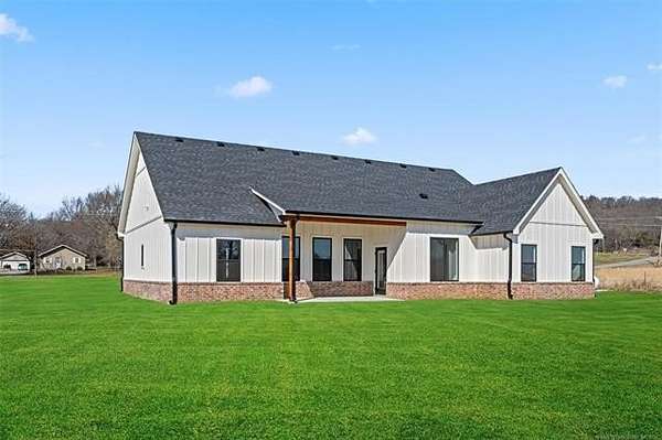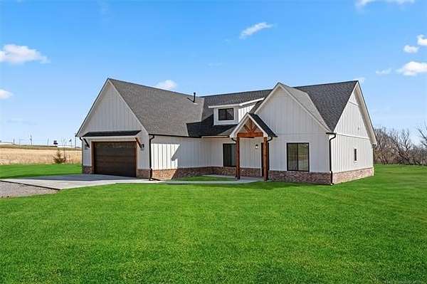 Stunning New Construction West of Pryor. Sits on a 1.5 acre lot. Welcome to this beautiful 4 bed 2.5 bath home. This modern new home offers an open-concept layout with lots of natural light, spacious living area with vaulted ceilings and custom finishes throughout. The kitchen features custom cabinetry, a large island, premium appliances, and quartz countertops- ideal for entertaining and everyday living! Expected completion February 2026. Located just west of Pryor where you can enjoy the peaceful setting of country living just minutes from all the conveniences of the city. Just a short drive to Owasso or Tulsa, this house is a must see!