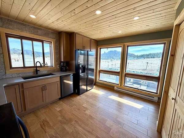 Escape to the beauty of Colorado mountain living with this fully renovated 1,200 sq ft home on 6.05 acres in Florissant. Featuring 2 bedrooms and 1 bath, this property offers the perfect blend of comfort and seclusion, with breathtaking panoramic views that truly set it apart. Enjoy year-round access via County Hwy 1, making it ideal for full-time living or a convenient getaway. The updated kitchen shines with new cabinetry, quartz countertops, and stainless-steel appliances, creating a clean, modern space that's both functional and inviting. Wood-look tile flooring flows continuously through the main living areas, adding durability and a cohesive, stylish finish throughout the home. Ideally located just minutes from national and state parks, this property offers easy access to hiking, fishing, and endless outdoor recreation right at your doorstep. Whether you're looking for a peaceful primary residence, a private second home, or a short-term rental opportunity, this versatile property checks all the boxes. With recent updates throughout and plenty of usable land to explore, this is your chance to own a slice of Colorado's natural beauty.
