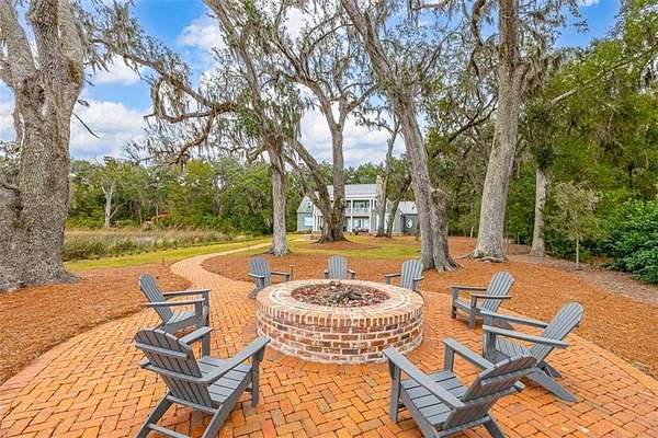 Located on the first floor is a large primary suite that features exposed pecky cypress beams, his-and-her walk-in closets with custom built-ins, a spacious bathroom with double vanities, a large walk-in shower, and a soaking tub for ultimate relaxation. Also on the first floor is an office with a vaulted ceiling complemented by pecky cypress beams and a wall of pecky cypress built-in bookshelves. Outdoor living is equally impressive with two spacious porches, a marsh-view fire pit, outdoor shower and hot tub and creating a truly private Lowcountry oasis.