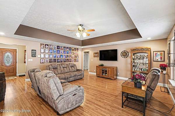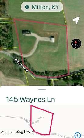 Custom-built brick home offering over 1,800 sqft & perfectly situated on just over 6 acres of beautiful rolling hills in Milton, KY! This property features 3 nice-sized bedrooms, spacious family room w/tray ceiling, well-designed kitchen w/custom oak cabinetry, stainless steel appliances, a dining area overlooking the backyard. Just off the kitchen & foyer you'll find a flexible space ideal for an office or formal dining room. Step outside & enjoy the peaceful setting from the covered back patio/porch-perfect for relaxing or entertaining. Major updates include a brand new roof in 2025, plus a newer hot water heater & water softener. You'll also love the large attached side-entry garage and the impressive 40x30 barn with 30x16 loft. Space, privacy & country living. Home Warranty Provided.