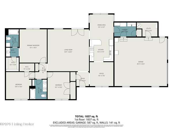 - Bathroom x 2, Bedroom x 3, Family Room, Laundry Room x 2