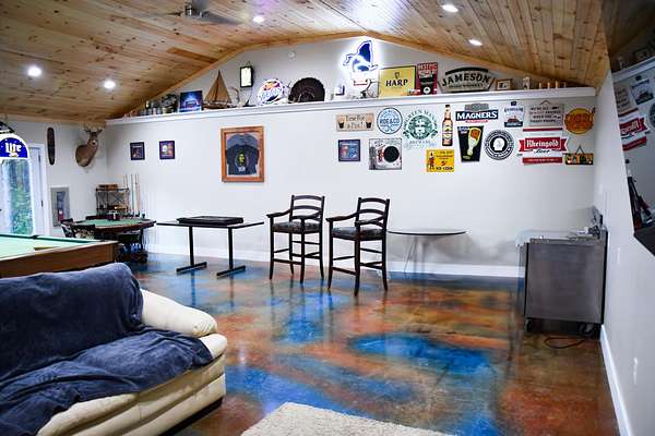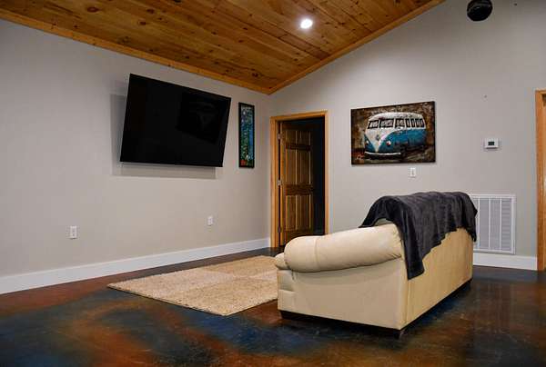 - Beamed Ceilings, Ceiling Fan(s), High Ceilings, Open Floorplan