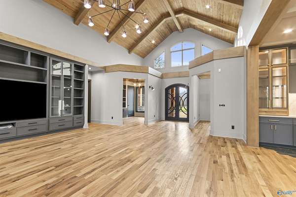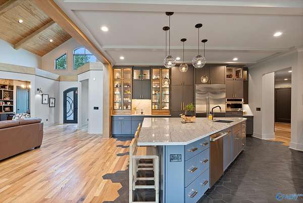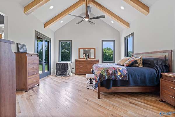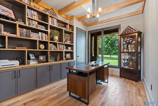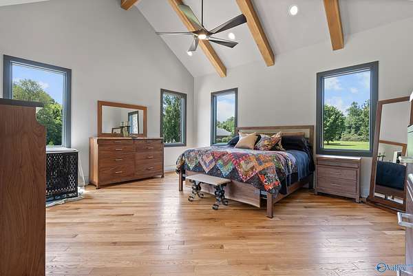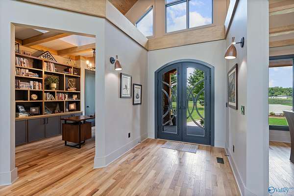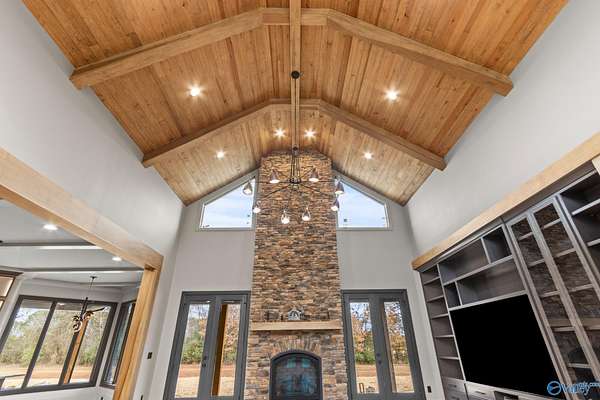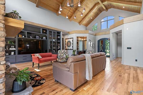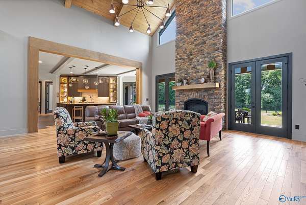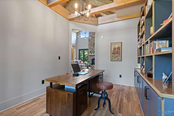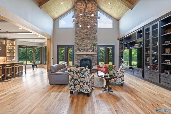 One-of-a-kind custom designed home on 3+ acres. Arched entry flows to arched steel doors and fireplace. Pine tongue & groove ceilings extend from outside in. Gourmet kitchen w/ GE Monogram 6-burner cooktop, griddle, quartzite counters and custom tile flooring. Walk thru pantry w/ lots of storage. Poplar beams & built-ins in dining room and office. Private primary suite with sitting area, vaulted ceilings and dual walk-in closets. Spa-like bath with custom tile dual shower, large soaker tub, and quartz vanities. Large studio! White oak flooring, safe room, whole-house Generac generator, 40x60 barn w/ bathroom, and outdoor fireplace perfect for entertaining. This home is a must see retreat!