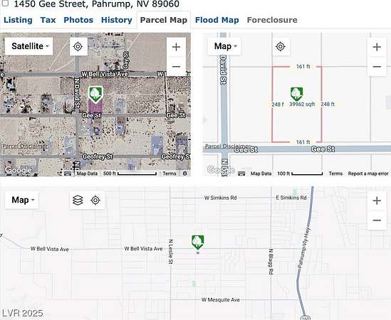 From Downtown Pahrump, take HWY 160 to W. Bell Vista Ave. Turn left onto W. Bell Vista Ave. Go about 2-3 miles and turn left onto N. David St. Turn left onto Gee St. Second parcel on the north side of street; one parcel from the corner.