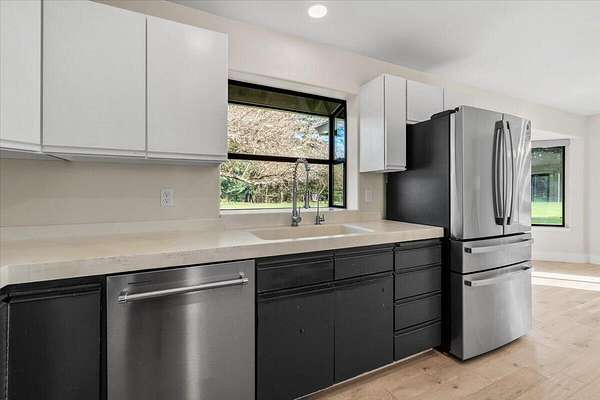Open House This Sunday 3/8 11-1. This newly updated single level dream home in the middle of a 2.5 acre sun-drenched gated estate just 10 minutes away from Cal Poly Humboldt is the one you won't want to miss and will never want to leave! Outdoor adventures are right out your front door, from the creek on this property with salmon and steelhead, to the Mad River swimming hole and miles of premiere mountain biking trails. Tastefully updated with gorgeous white oak hardwood floors and new interior and exterior paint and decking, this home is completely move-in ready with nothing to do but place furniture. A triple garage provides ample room and a whole home generator provides peace of mind during power outages. This ideal location on Hatchery Road 6 miles east of Cal Poly Humboldt provides with paved road convenience and quick access to Arcata. Outside in the warmth and sun you will enjoy the fenced garden, peach, pear, plum, apple trees, the huge viewing deck and expansive patios, perfect for entertaining! Other features include office/4th bedroom, air conditioning (warm summer weather), hot tub/spa built into deck, patio with fire pit, reverse osmosis system. Updates Made to Hatchery Rd. in 2025 I White Oak flooring installed throughout home Hunter Douglas Shades installed throughout most of home I New hard-sided galvanized ducting installed for HVAC system I House repainted inside and out I New back deck with wraparound railing for hot tub and new stairway to side of house I Viewing deck was upgraded to include more post/piers I Glass shower doors installed in both bathrooms (McKinleyville Glass) I New screens installed on all interior windows (McKinleyville Glass) I Back sliding glass door replaced with premium fiberglass and screen I All exterior light fixtures replaced I All interior light fixtures replaced except pendants over bar and fixture over front door I Guest bathroom redone (tile floor, vanity, shower door, light fixture, towel racks) I All interior doors (except garage) replaced with solid core, three panel shaker-style doors I All closets redone (except primary bedroom) with solid wood shelving and rod I Updated electrical panel to code, including main panel, standby generator panel, and pump house I Replaced all outlets and outlet covers in the house and most of the garage (to match white paint I Updated lighting in the garage I Replaced most hose bibs on property I All interior faucets replaced except kitchen I Reverse Osmosis system added under kitchen sink I Washer/Dryer were purchased in May, 2025 I Refrigerator purchased in May, 2025 Fruit Trees Trees closest to the driveway in order from garden to street are: 1. King apple 2. Golden Delicious apple 3. Gravenstein apple 4. Jonathan apple Second line of trees farthest from driveway from garden to street are 1. Plum 2. Peach 3. Pear 4. Pear Garden The garden has all organic soil with no pesticides used. (No pesticides were used on fruit trees either.) The border around the outside of the garden includes many perennial herbs and pollinator-attracting flowers. Roses A spectacular mature rose garden grows along the driveway side of the garden.