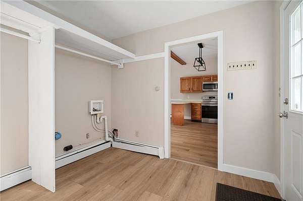 Discover a beautifully updated New England home set on five private acres in Burrillville, just minutes from the North Smithfield line. This property now offers a fresh, updated interior with high ceilings, Refinished beautiful hardwood floors, inviting layout, and a warm modern feel throughout. The recent improvements bring a crisp, move-in ready finish while preserving the charm and character of its era. Step inside to find bright living spaces, refreshed details, and a surprising amount of room that the exterior simply does not reveal. The setting is truly special. Mature woodlands, a scenic trail, and an open yard create a peaceful retreat perfect for relaxing, entertaining, or exploring nature right at home. A newer septic system adds confidence for the next owner, and the oversized barn remains a major bonus for hobbyists, tradespeople, mechanics, or anyone needing significant storage or workspace. The possibilities are wide open. This newly renevated property offers the privacy of a country setting with the convenience of being close to town. A rare opportunity for buyers seeking space, charm, and a turnkey home in northern Rhode Island. Schedule your showing and experience this one of a kind property.