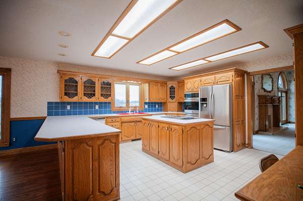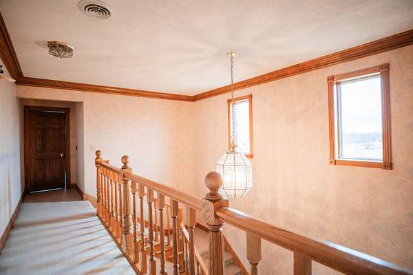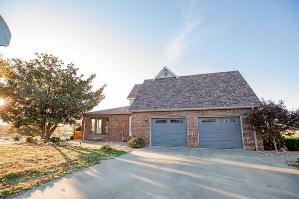 Just minutes from Stockton Lake, this custom all-brick estate sits proudly on 20 acres a rare blend of craftsmanship, tradition, and open space. Built with an attention to detail that's hard to find these days, it's the kind of property that makes a statement the moment you arrive.Step through the front door into the grand foyer, where soaring ceilings and an oak staircase instantly set the tone. Natural light pours in, highlighting the home's warm character. To the left, glass pane French doors lead into a formal dining room built for memorable gatherings. Straight ahead, the living room showcases floor to ceiling windows and a stately oak-mantel fireplace. Just off the main living area, a private study offers a quiet retreat whether for book lovers, late-night work, or both.The kitchen is as practical as it is inviting, with rich oak cabinetry, extensive storage, a generous center island, and a breakfast nook designed for lingering conversations over coffee. This is a home meant to be filled with people.The main level master suite is a retreat all its own, complete with a walk in closet, a jetted soaking tub, and even a steam shower a touch you don't see every day.Upstairs, two large bedrooms each feature walk-in closets, private baths, and views that stretch across the countryside.The walkout basement is built for versatility and good times, with new laminate flooring, a kitchenette, a non-conforming bedroom, and plenty of storage.Step outside and the possibilities only grow. A massive shop stands ready for sailboats, motorhomes, or whatever big projects you've been dreaming up. And now, with 20 acres of open ground surrounding the home, there's more room than ever to stretch out, breathe, and make it your own.This is more than just a house it's a legacy of quality and care, offered now with the land to match.